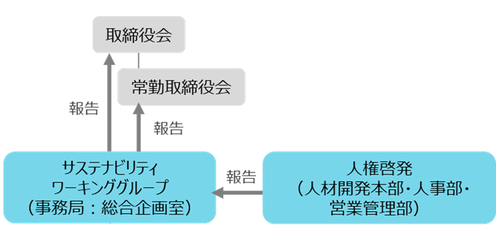 当社は、人権への負の影響の停止・防止・軽減措置等の実施が効果的に行われているか、サステナビリティワーキンググループでモニタリングし、定期的に取締役会へ報告しています。