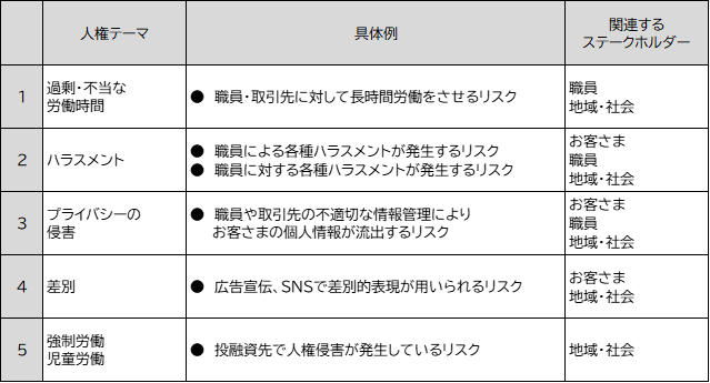 当社は、人権課題に対する対応について、経営理念の主体である「お客さま」「地域・社会」「職員」をはじめとするすべてのステークホルダーとの対話や協議に努めます。