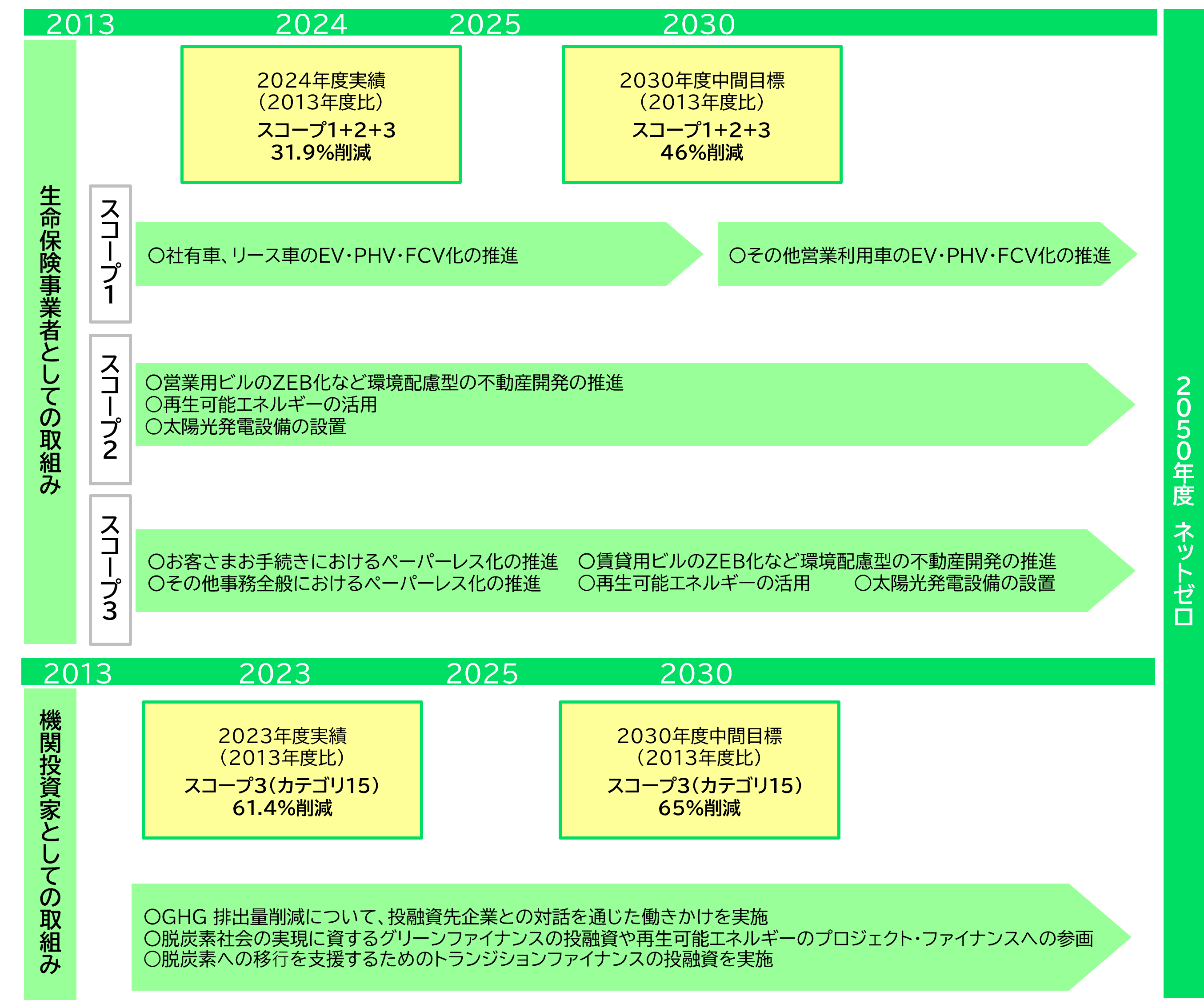 当社は、気候変動問題の解決に向けて、事業活動および運用ポートフォリオにおける温室効果ガス(以下、GHG)排出量について、2030年度中間目標、2050年度のネットゼロを最終目標として設定しております。